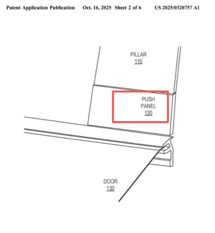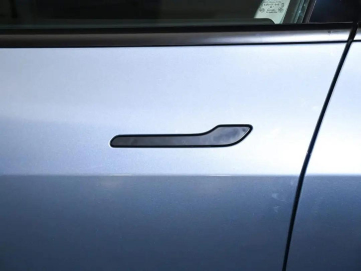 特斯拉又一次挑战的传统模式,这一次,他把开门装置放在了b柱里面,彻底告别了外露的门把手,就像是下图这个样子。